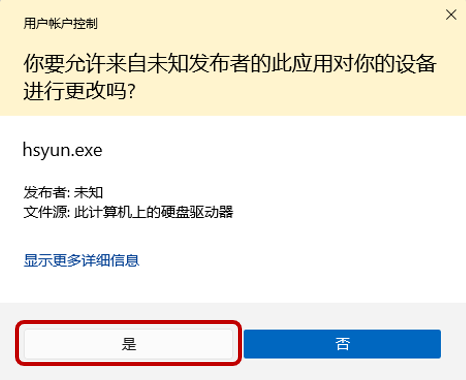 若提示【你要允许来自未知发必者的此应用对你的设备进行更改吗?】等安全信息,请选择【是】。