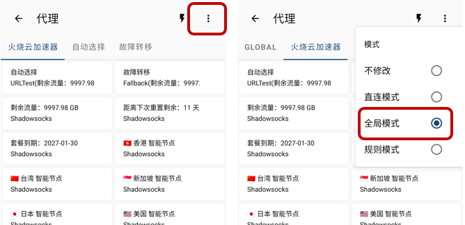 关于 规则与全局代理 模式。