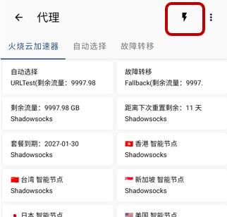 点击【⚡️】闪电符号,可刷新延迟时间。