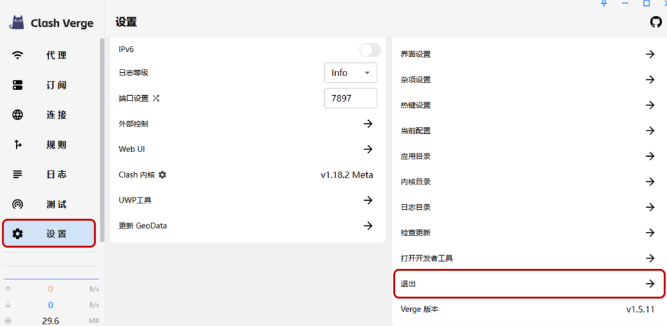 前往左侧【设置】页面,在下方点击【退出】。