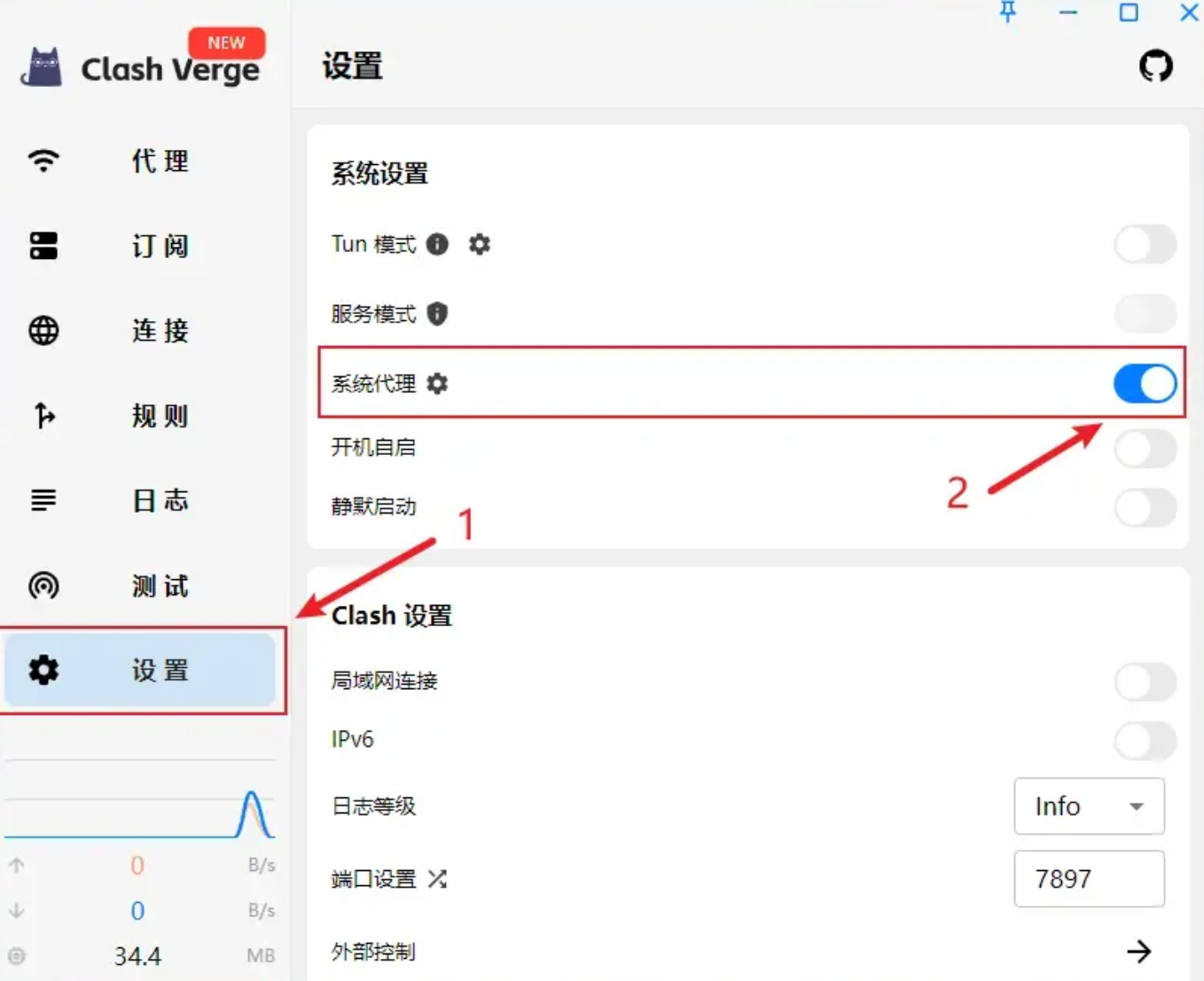 前往【设置】页面,启用【系统代理】。