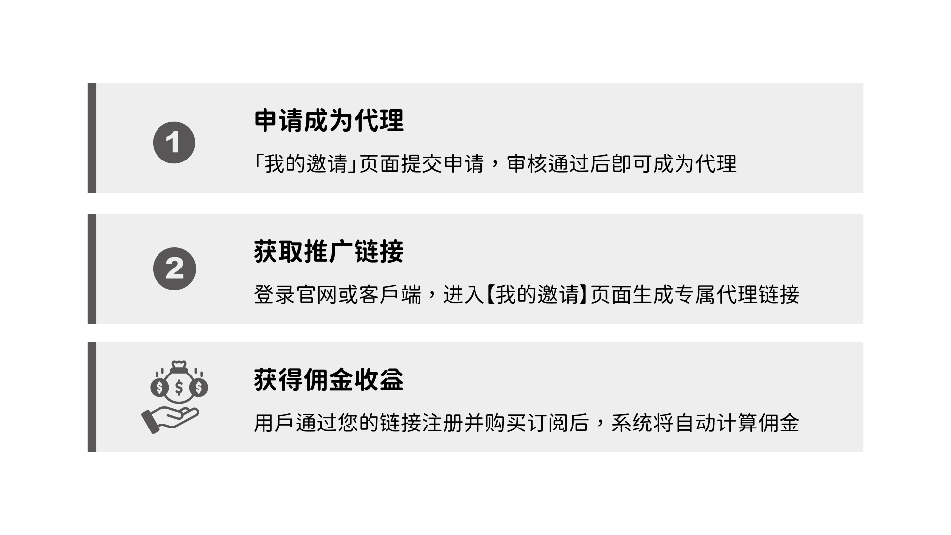 通过以下几个步骤,即可开始您的佣金代理推广之旅: