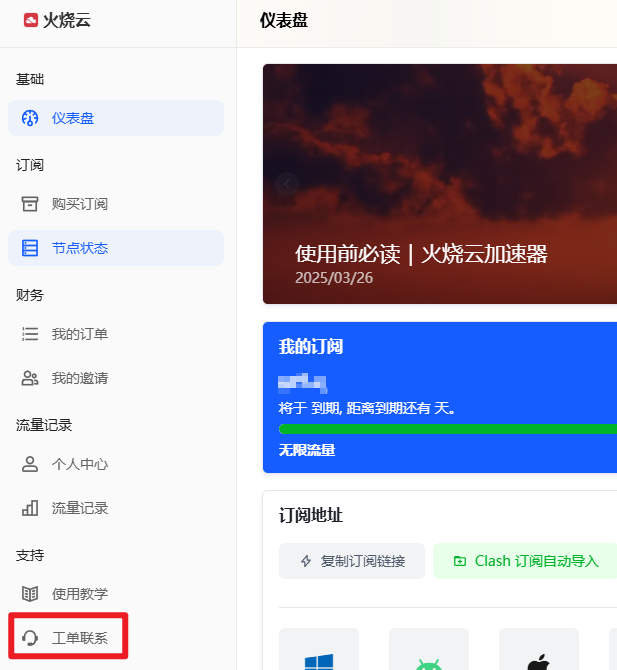 请访问 火烧云官方网站 ,找到【工单联系】,提出申请信息:
