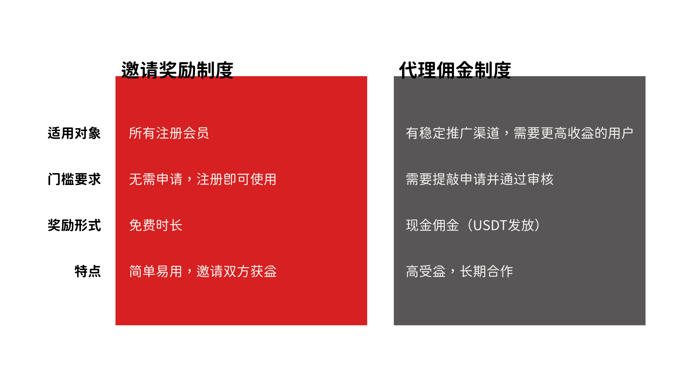 这两种邀请制度各有特点,下表对比将帮您快速了解差异,选择最适合的推广方式。