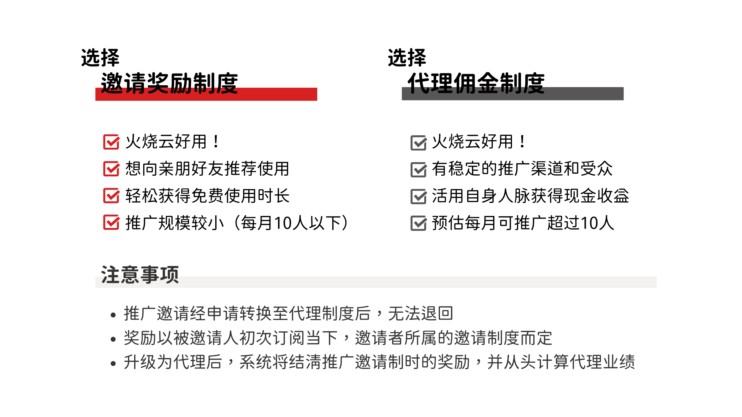 火烧云提供两种奖励制度:邀请制 & 代理制