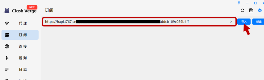 复制订阅链接后,回到您的通用客户端,导入复制的链接。